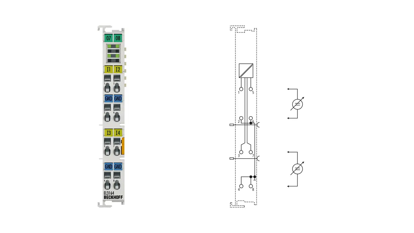 Die analoge Eingangsklemme EL3164 verarbeitet Signale im Bereich von 0 bis 10 V. Mit einer Auflösung von 16 Bit wird die Spannung digitalisiert und galvanisch getrennt zum übergeordneten Automatisierungsgerät transportiert. Bei der EtherCAT-Klemme EL3164 sind die vier Single-ended-Eingänge in 2-Leitertechnik ausgeführt und besitzen ein gemeinsames, internes Massepotenzial. Die Powerkontakte sind durchverbunden. Der Signalzustand der EtherCAT-Klemme wird durch Leuchtdioden angezeigt.