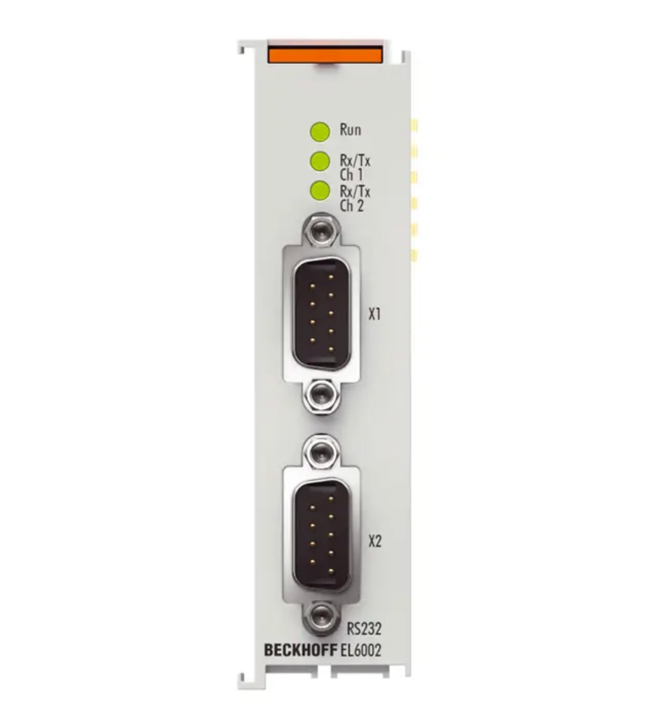 Die serielle Schnittstelle EL6002 ermöglicht den Anschluss von Geräten mit zwei RS232-Schnittstellen. Die an die EtherCAT-Klemme EL6002 angeschlossenen Geräte kommunizieren über den Koppler mit dem Automatisierungsgerät. Der aktive Kommunikationskanal arbeitet unabhängig vom überlagerten EtherCAT-System im Vollduplexbetrieb mit 300 Baud bis zu 115,2 kBaud. Die RS232-Schnittstellen garantieren hohe Störsicherheit durch galvanisch getrennte Signale.
