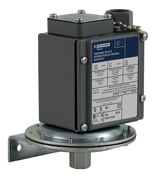 Electromechanical vacuum switch, 9016G, adjustable scale, 2 thresholds, Set 0 to 28.3 InHg